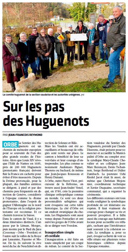 abordant le sujet du REFUGE HUGUENOT EN PAYS DE VAUD.